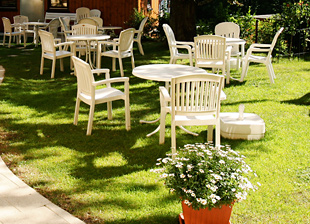 Unsere zwei Gärten laden zum Verweilen und Ausruhen ein. Und sollte das Wetter mitspielen, servieren wir Kaffee und Kuchen gerne auch hier im Grünen.
